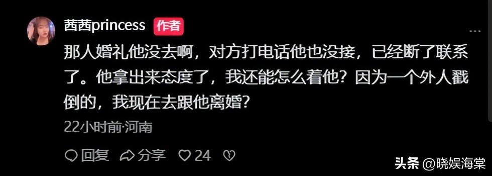 新娘也表明态度,表示既然老公已经和他断联了,自己也不好在说什么了,没有必要为了一个外人刚结婚就去离婚,这样人生岂不是都被毁了。